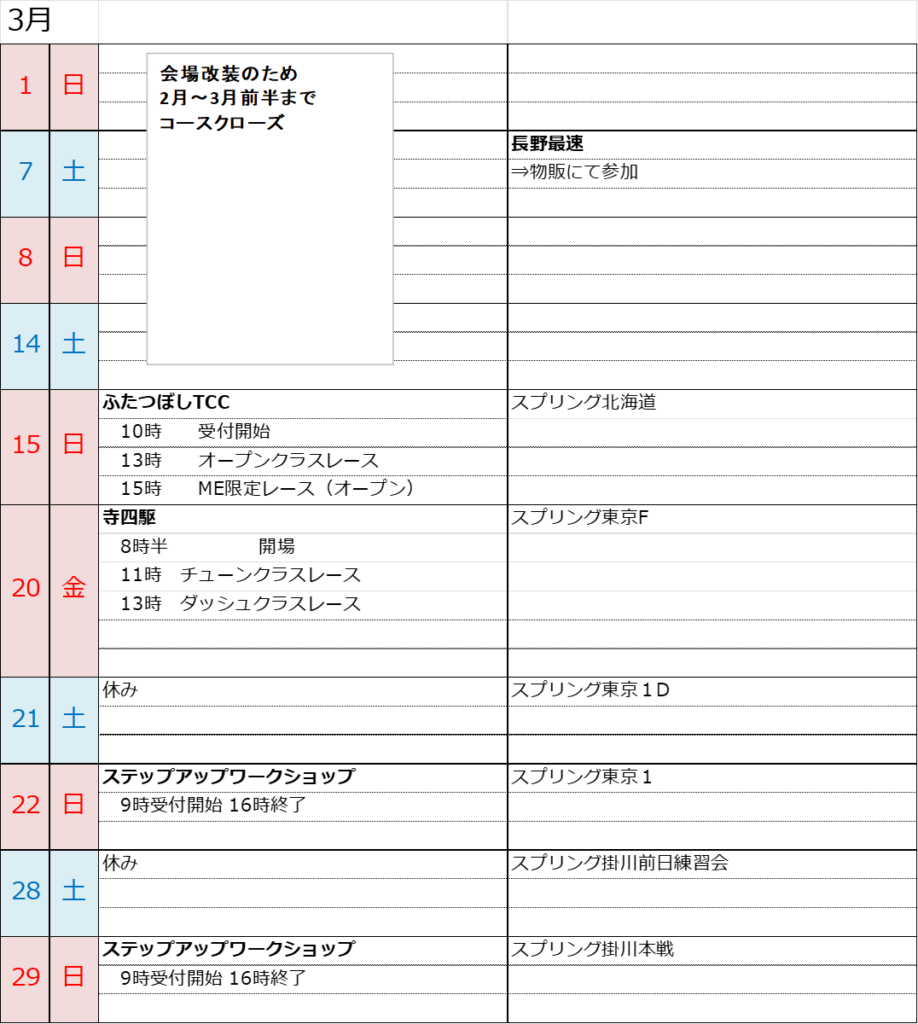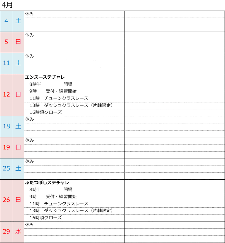 4月の予定は仮スケジュールとなります、変更の可能性ありご了承ください。